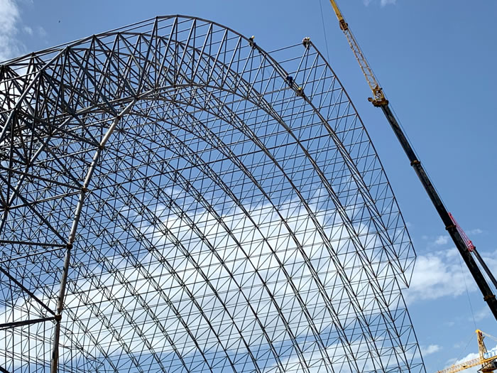 (2)网架加工前应对现场尺寸进行复测,确认无误后方可进行加工、安装;网架制作、运输、安装应遵守《空间网格结构技术规程》JGJ7-2010、《钢网架登封螺栓球节点》JG/T 10-2009、《钢网架登封螺栓球节点用高强度螺栓》 GB/T 16939-2016、《登封钢结构登封工程登封施工规范》 GB50755-2012、《登封钢结构登封工程施工质量验收标准》 GB50205-2020。